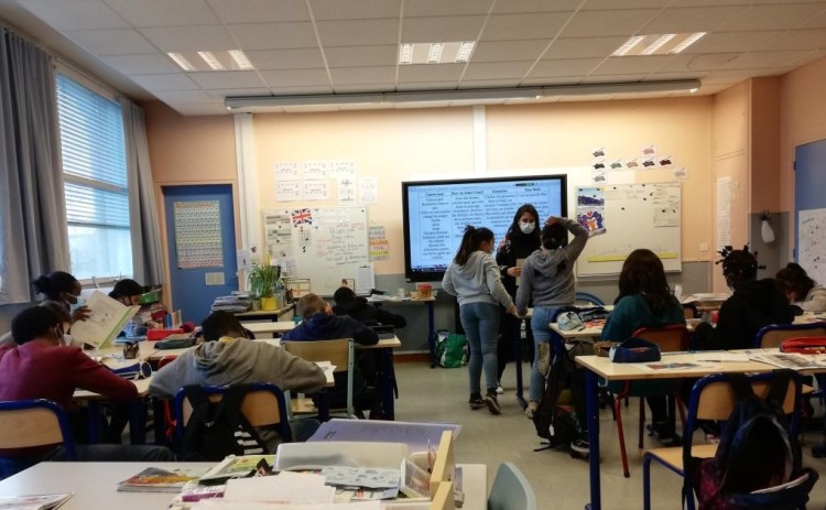 Les élèves de Madame Sélino sont en cours d’arts visuels. Ici, il s’agissait de dessiner à partir de photos en noir et blanc. C’est une nouvelle matière que les élèves aiment beaucoup. Il y a aussi évidemment des cours de sciences, de français, d’anglais et de sport….