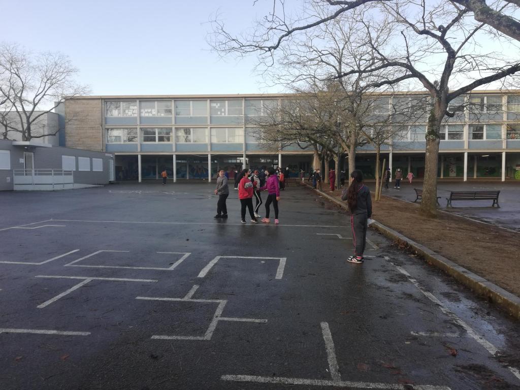 Les élèves de l’école arrivent à 8h35. les cours commencent à 8h45. En attendant, ils parlent entre eux dans la cour. Les CP, CE1 et CE2 sont sous le préau. Les CM1 et CM2 sont sur les plateaux. Ils ne peuvent plus se mélanger à cause du COVID.