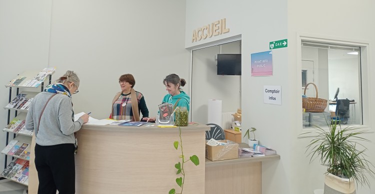 Apres avoir poussé les portes vitrées du nouveau bâtiment des Cadets de Bretagne, les amateurs de livres sont accueillis par Maria, Genny et Laurence, bénévoles du festival. Toute la journée, elles éclairent les pistes du labyrinthe de feuilles à caractères et imagées, qui mènent à l’auteur admiré, à la conférence instructive ou l’activité divertissante…