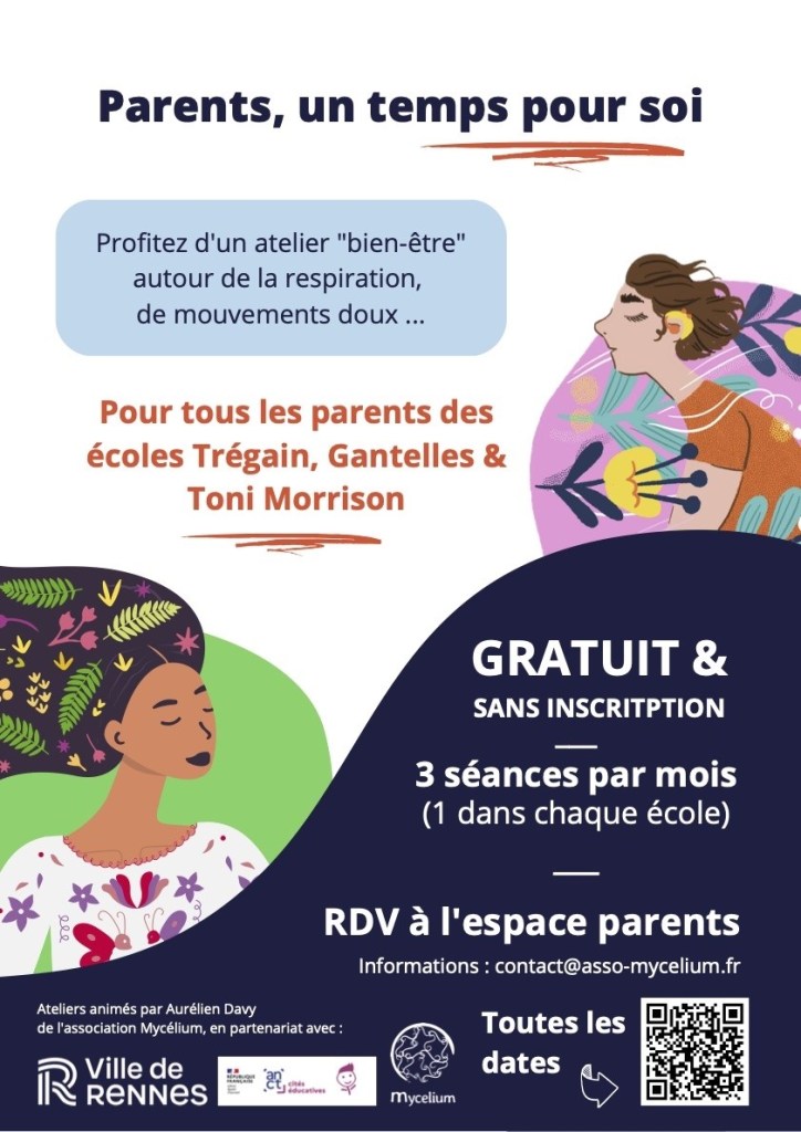 L’association Mycélium propose trois fois par mois un atelier bien-être pour les parents d’élèves des écoles Toni Morrison, des Gantelles et de Trégain à la recherche d’un temps pour soi. L’animateur, Aurélien Davy, leur offre un moment de répit. Immersion dans cette activité gratuite.