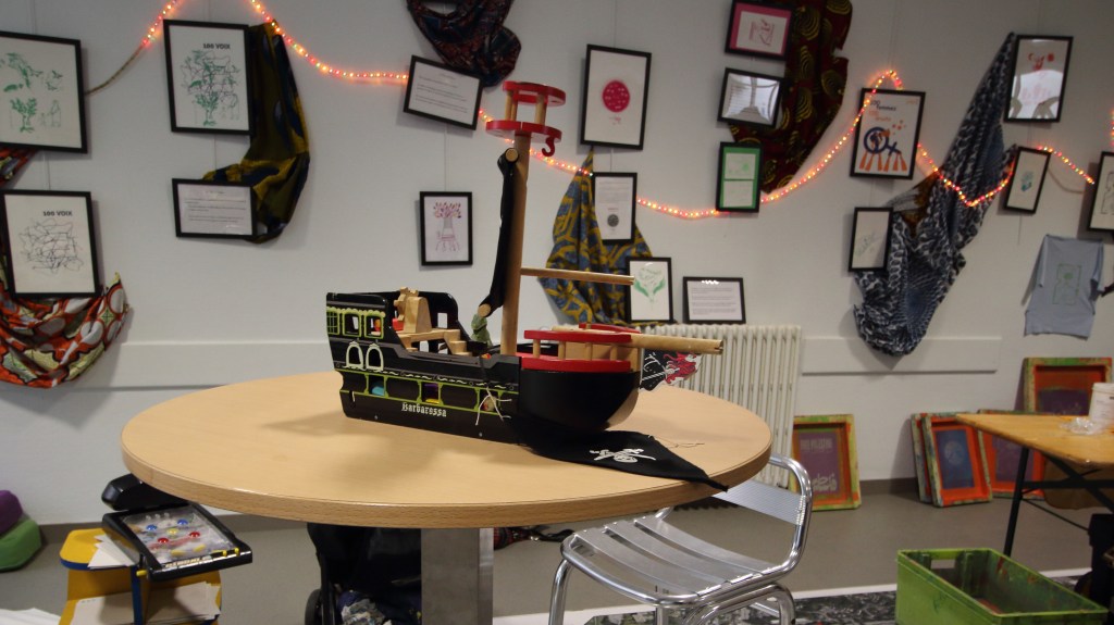 Une trentaine de bénévoles, petits et grands, se sont mobilisés pour l’organisation de 100 toits, festival proposé par Anime & Tisse, GRPAS Rennes, Fondation Abbé Pierre, Elan interculturel, Un toit c’est un droit, Les clandestines, Le vol en V, La Cimade, la loupiote et Front de MèresUn atelier coloriage dans le Hall du Pôle associatif de la Marbaudais a fait le plein tout la journéeA côté, les enfants, équipés de blouses, ont pu laisser aller leur créativité avec un atelier peintureUn bateau pirate attend les enfants