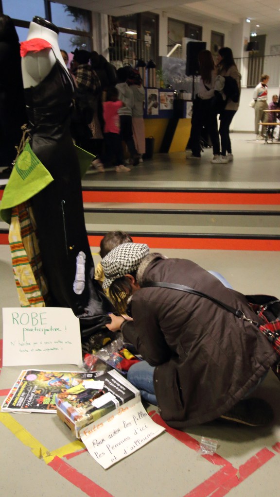 Le public était invité à participer à la confection d’une robe, qui a ensuite été présenté lors d’un défilé de mode en début de soirée