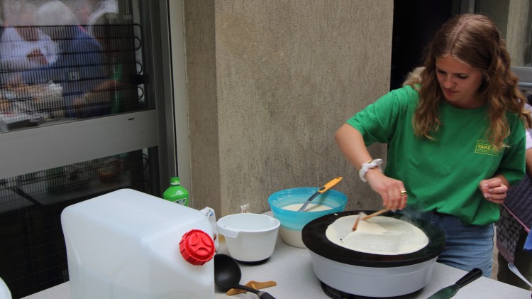 Les bénévoles servent et vendent les desserts qu’ils ont réalisés la veille. Ils proposaient aussi des crêpes faites sur place. Les gourmands ont été ravis.