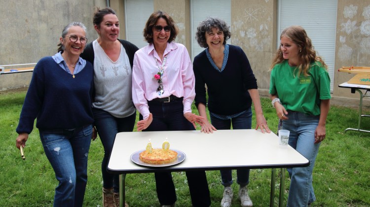 juste avant de fouler les bougies et que tous les participants souhaitent un joyeux anniversaire au Centre socioculturel des Longs-Prés.