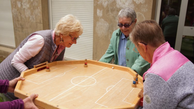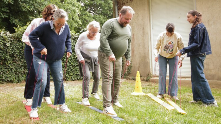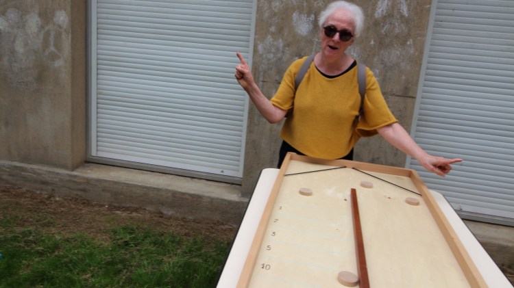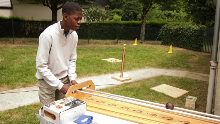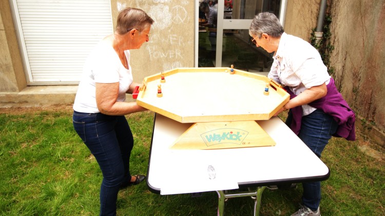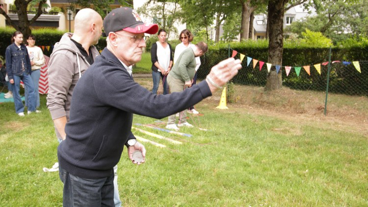 Après le BBQ, les participants aux 40 ans des Longs-Prés se sont amusés comme des enfants aux jeux géants proposés : course de ski, palets et autres jeux bretons…