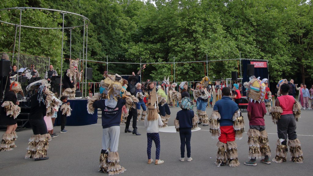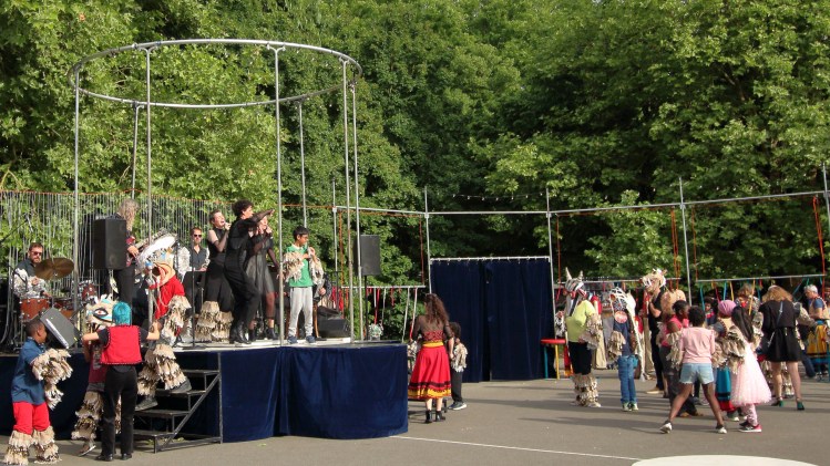 L’après-midi du dimanche 25 mai a été ponctué de cinq rendez-vous proposées par le Centre Social de Maurepas et sa ludothèque, le Grand Cordel MJC, la Maison de Quartier de La Bellangerais et Lillico, qui coordonne ce festival. Maquillage, création collective, déambulation à vélo, danse contemporaine et bretonne et bal marionnettique… pendant toute l’après-midi, les habitants étaient tout à la fois spectateurs et acteurs.