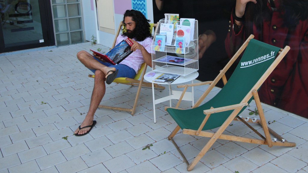 Des chaises longues pour se poser et lire quelques ouvrages autour de l’art et s’informer sur les activités gratuites du Musée de Maurepas