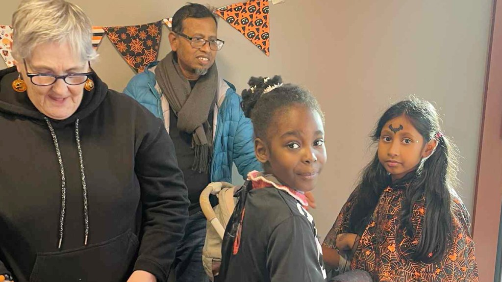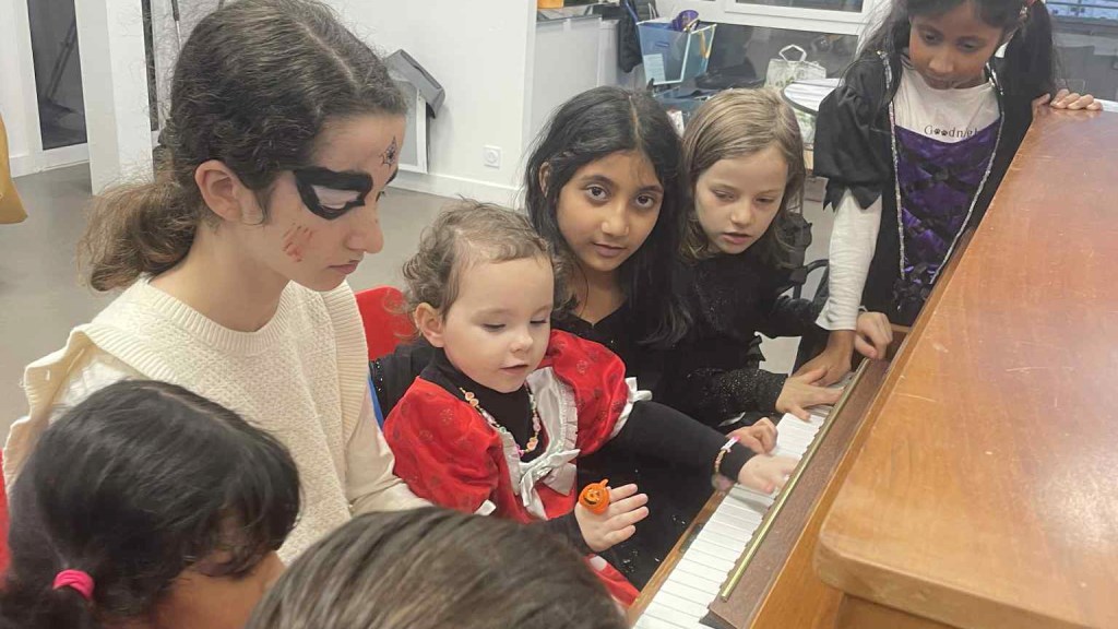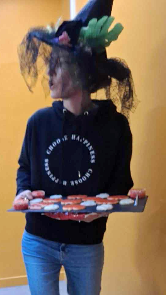 Une fois maquillés et costumés, Lounaya et sa sœur, Amir et son cousin, Ayaka, Fatima, Mohamed, Rahaf, Rama, Giulia, Chiara, Mardiaha, Merzabin, Rizwan, et Rachka avec ses frères et sœurs sont partis dans les étages jeter des sorts et récolter des bonbons aux autres habitants. Arrivés au 16ème étage, ils ont découvert une salle des habitants décorée grâce au talent créatif de Chantal et à l’aide précieuse d’Alain. Un bon goûter les y attendait.
