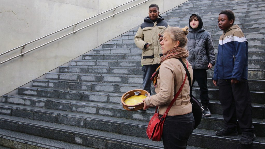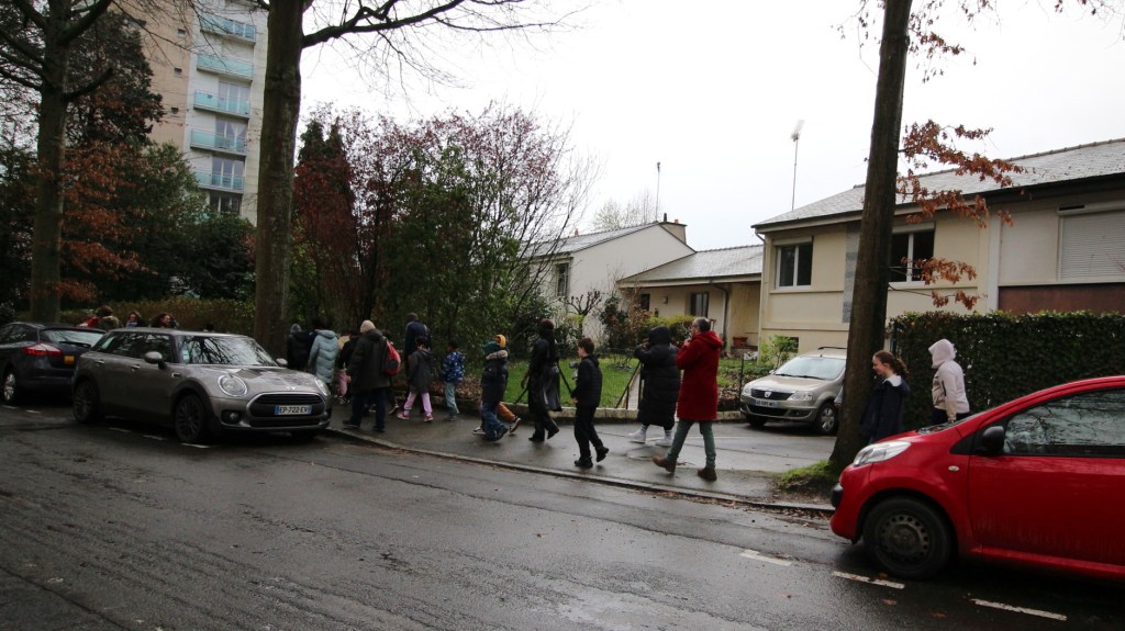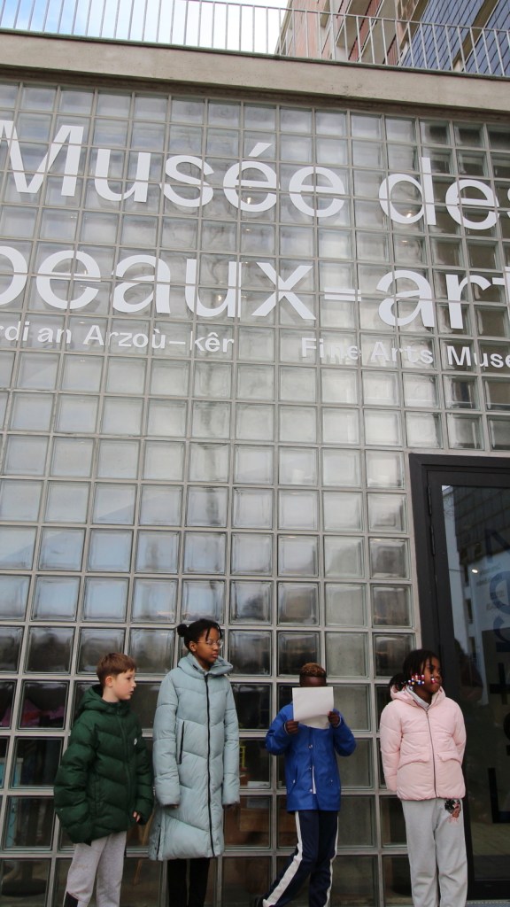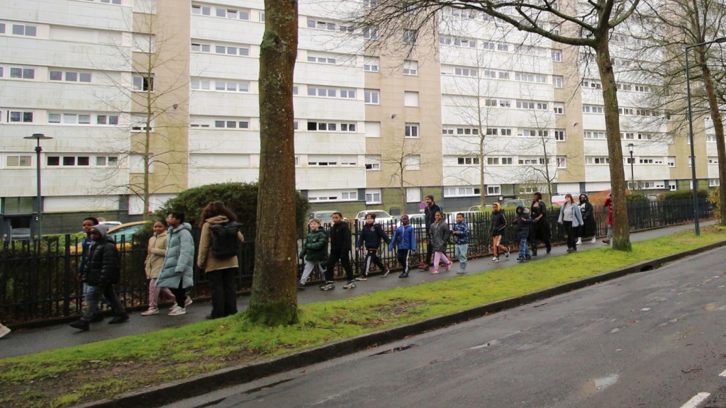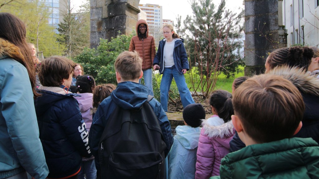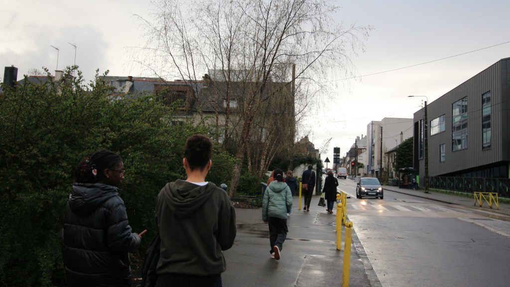 Mercredi 11 mars. 8h30. 12 élèves du Collège Clotilde Vautier partent pour les Gayeulles, le point de départ des balades contées. Depuis septembre 2025, avec l’aide de Morgane Le Cuff, ils ont imaginé des histoires sur des lieux du quartier de Maurepas : piscine, métro, promenade Odette du Puigaudeau, Parc de Maurepas, Musée de Maurepas, Radis de la coulée verte…