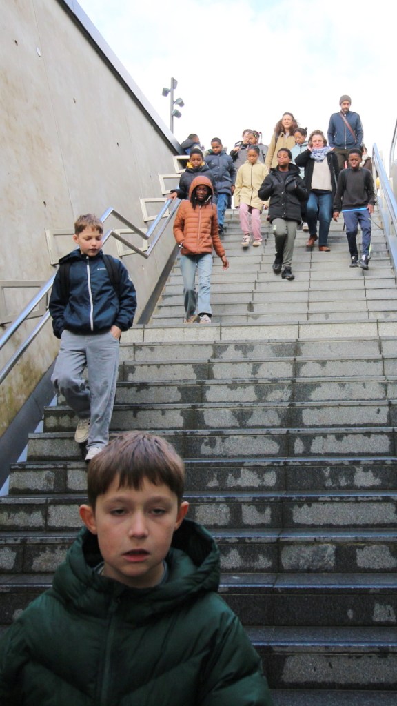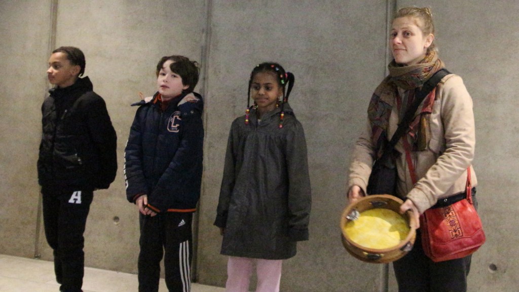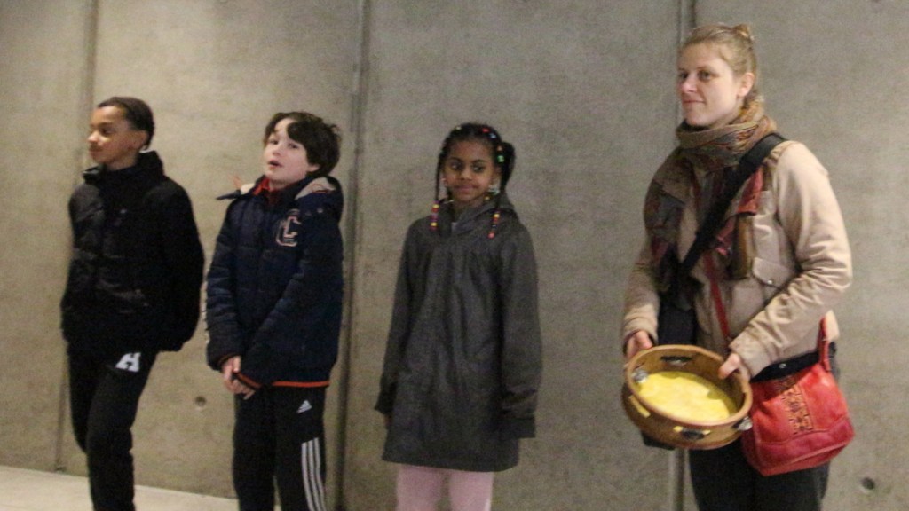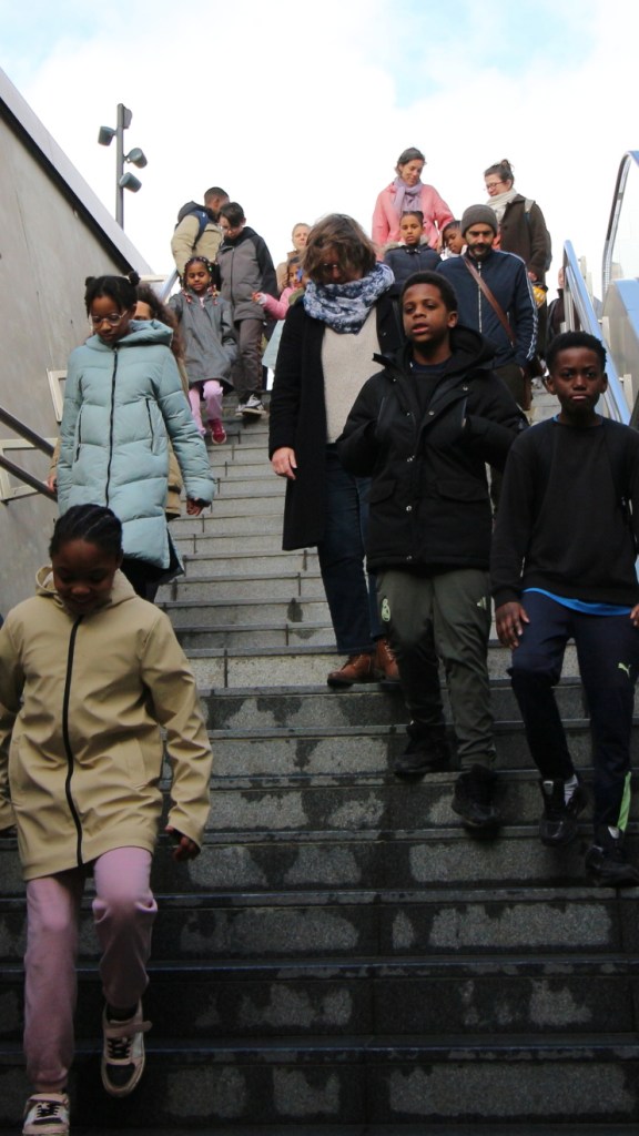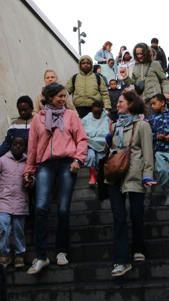 Après le Parc de Maurepas, direction Gros-Chêne. Un arrêt se fait devant le musée des Beaux-Arts pour écouter les élèves des CM1 et CM2 de l’école des gantelles qui racontent qu’ils se sont faits enlever des tableaux. Puis dans la station de métro. Deux groupes d’élèves de 6e du Collège ont déclamé leurs histoires.