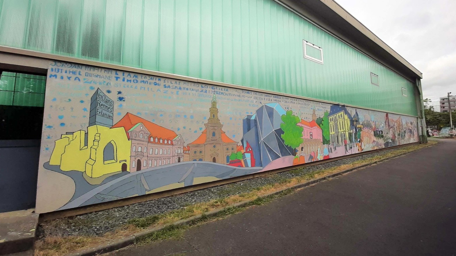 Vendredi 27 juin 2025, la Fresque Rennes-Erlangen, réalisée entre octobre 2024 et juin 2025 par les élèves de l’école des Gantelles avec l’artiste Etiou, a été inaugurée. Reportage en images.
